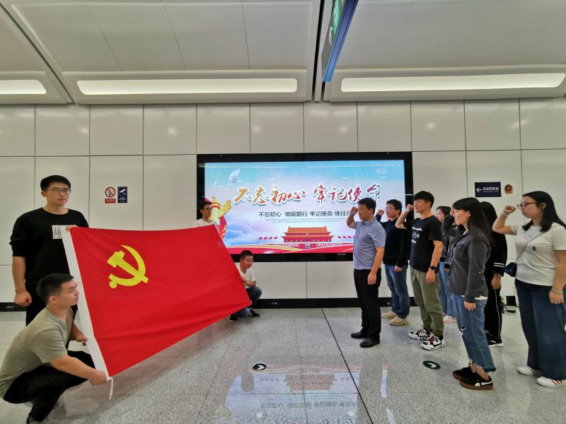 为切实做好“不忘初心、牢记使命”主题教育,9月24日下午,太阳成集团tyc122cc研究生党支部组织开展了“不忘初心、牢记使命”体验式主题教育活动。支部书记王孝云、马柏林带领9名研究生党员代表从古天乐代言太阳集团雁塔校区出发,乘坐地铁抵达西安北客站,由北客站乘坐城际铁路抵达西安咸阳机场。