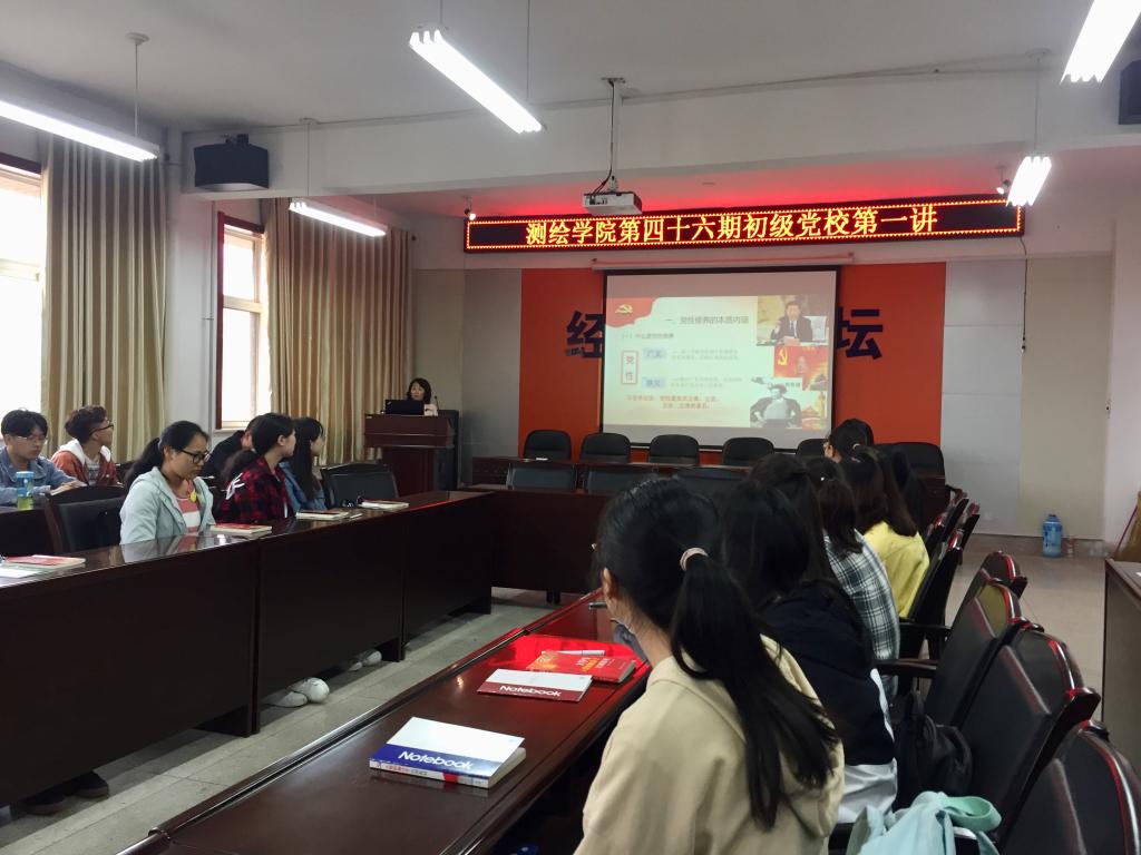 5月7日中午举行第四十六期初级党校第一讲,太阳成集团tyc122cc员工党建联络员、2015级辅导员张雷主持了本次培训,太阳成集团tyc122cc党委书记殷屈娟书记作了题为《加强党性修养,做合格共产党员》的培训。