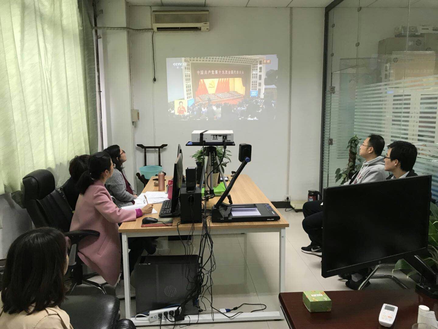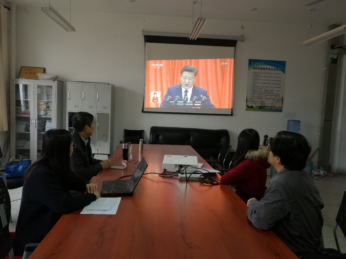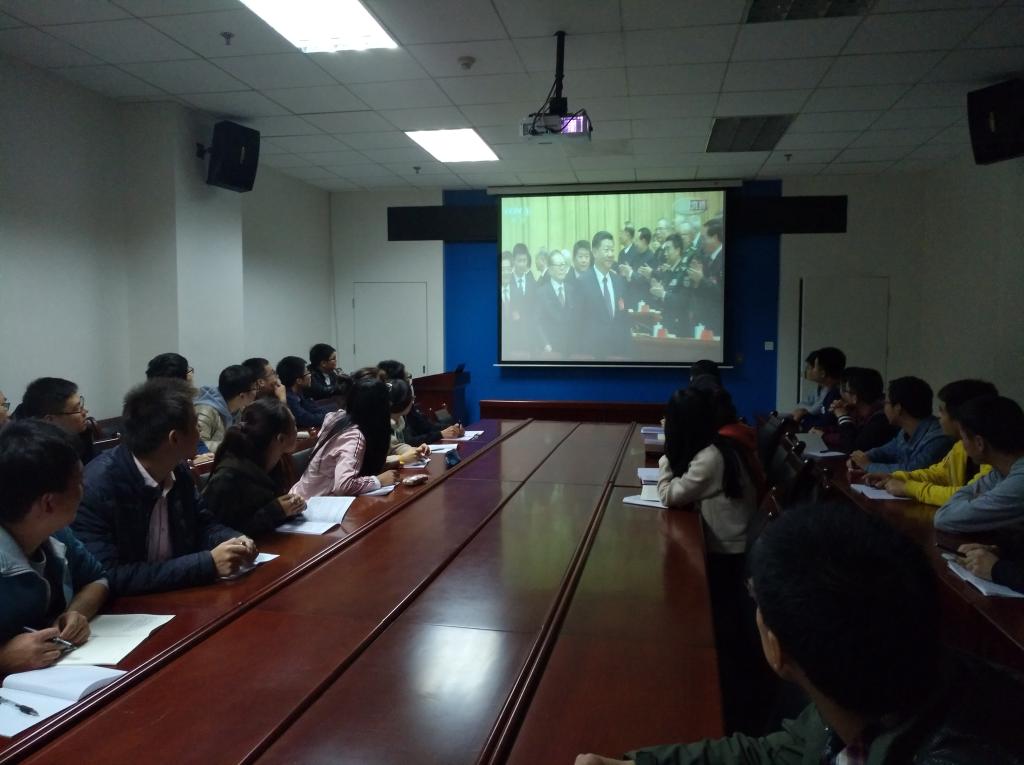 在各分会场,大家全神贯注,认真聆听习近平总书记“不忘初心,牢记使命,高举中国特色社会主义伟大旗帜,决胜全面建成小康社会,夺取新时代中国特色社会主义伟大胜利,为实现中华民族伟大复兴的中国梦不懈奋斗”主题报告。大家被全面、深刻的报告深深吸引,每到报告精彩之处,纷纷热烈鼓掌。特别是回顾十八大以来取得的成就,以及创新驱动发展战略实施和创新型国家建设成果丰硕,科技成果相继问世等报告内容,作为教学科技工作者,大家感到十分自豪并充满了无限激情。