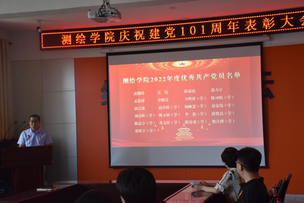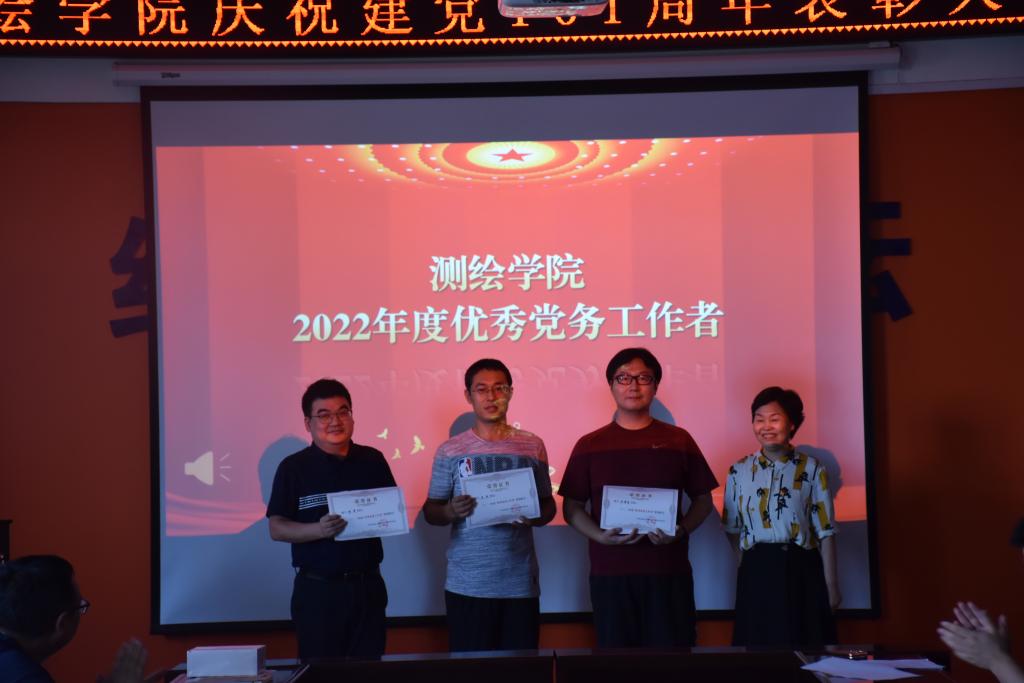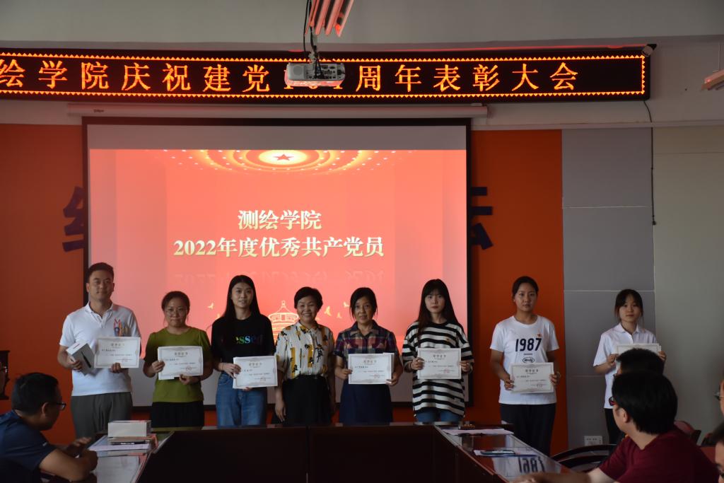 首先在党委书记殷屈娟同志的带领下,参会党员面向党旗重温入党誓词。党委副书记贾哲、副经理李朋飞先后宣读了公司党委的表彰决定,授予武继峰等21名同志“优秀共产党员”称号;授予吴啸龙等4名同志“优秀党务工作者”称号;授予史晓亮等20名同志为使用“学习强国”学习平台学习先进个人荣誉称号;授予邱春霞等8名同志“2021年国家一流专业建设点申报工作先进个人”荣誉称号。公司党委书记殷屈娟为获得表彰的先进个人颁发了荣誉证书并合影留念。