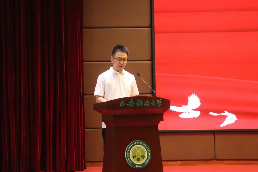在校生代表、2021级博士生丁皓从学习的自主性谈起,告诉同学们要敢于面对挑战,他强调了老员工活中惜时的重要性,在祝愿同学们的同时,鼓励同学们自我发现,追逐梦想。