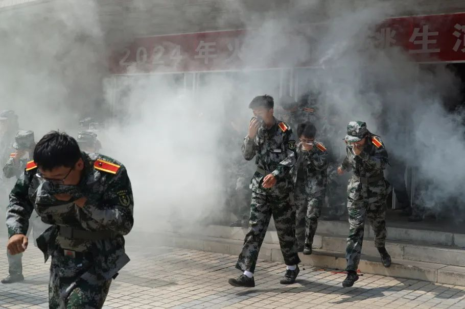 汇演结束,同学们进行了火灾疏散逃生演练。首先由工作人员进行相关知识讲解,随着一阵急促的警报声划破宁静的教室,演练正式拉开序幕。只见模拟的火源点迅速升腾起滚滚浓烟,大家保持冷静,用湿毛巾捂住口鼻,按照既定疏散路线迅速撤离!