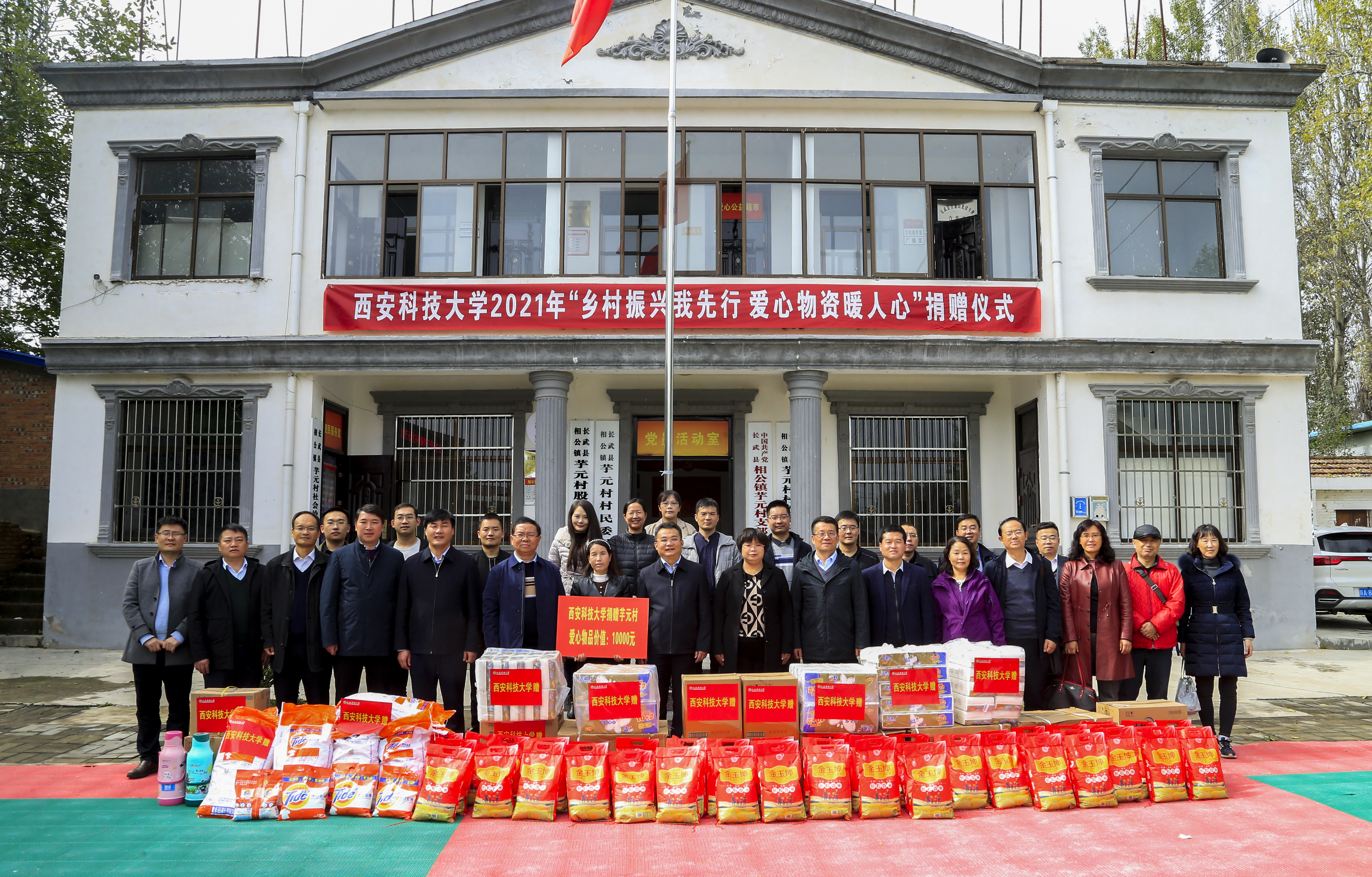 集团在芋元村村委会广场举行的“乡村振兴我先行、爱心物资暖人心”捐赠活动。长武县委常委、统战部部长王静,相公镇党委书记巨伟、党委副书记王博、镇人大主席魏彦林,公司党委副书记樊建武、工会负责人、相关分党委负责人、驻村干部参加了由公司党委组织部刘文刚部长组织的捐赠活动。公司殷屈娟书记、史晓亮副经理也参加捐赠活动。樊建武对相公镇党委、政府的工作给予了充分肯定。他表示,古天乐代言太阳集团与镇、村两级将继续发扬脱贫攻坚精神和伟大建党精神,结合相公镇地域特点,公司将进一步发挥高校在人才、学科、文化等方面的资源优势,在巩固脱贫攻坚成果同乡村振兴有效衔接期内深度挖掘、拓展帮扶内涵和措施,真正使帮扶效果契合相公镇、芋元村实际,齐力为打造乡村振兴示范镇、示范村赋能助力。