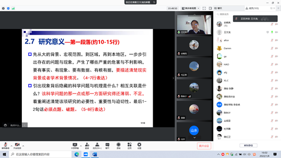 报告会上,王文龙研究员主要围绕国家自然科学基金资助政策变化、基金写作技巧及评选规律等,详细讲解了基金撰写的要点、重点和难点等关键问题,对基金写作进行了全面系统的讲解和指导。最后,王文龙研究员同与会教师就相关问题进行了交流和讨论。