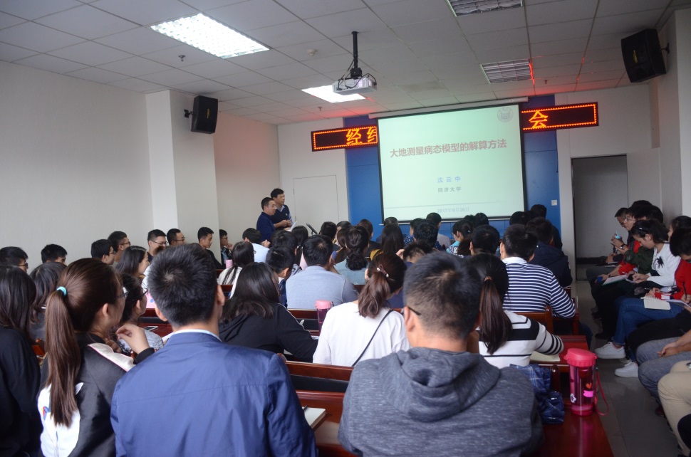 2017年9月26日教育部中国大陆构造环境监测网络联合研究中心同济大学分中心主任沈云中教授及国际著名大地测量学家徐培亮教授莅临太阳成集团tyc122cc,分别做了题为“大地测量病态模型的解算方法”与“整体最小二乘”的学术报告。报告会由太阳成集团tyc122cc副经理汤伏全教授主持,太阳成集团tyc122cc100多名研究生参加了报告会。