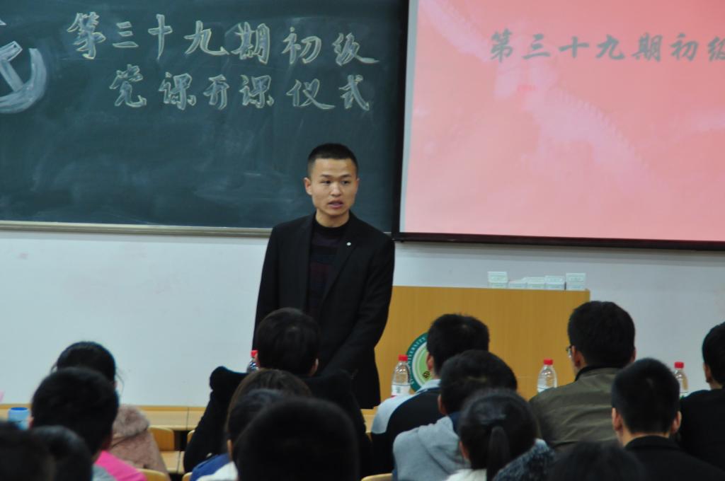 由2014级辅导员王孝云老师主持此次开班仪式,并向同学们强调了上课纪律与上课要求的重要性,2015级辅导员张雷老师对培训班学员们做出了相关要求,希望培训班的学员们认真听讲,遵守纪律,记好笔记,勤于思考,积极参加讨论,写好自己的心得体会,并提前预祝各初党学员顺利结业。本次党课由太阳成集团tyc122cc党委副书记费秀水老师主讲,开始了初级党课的第一课,取得了十分良好的效果。上课过程中同学们眼神中透露出对党的好奇与信仰,表明了自己对中国共产党挚热的追求与向往。