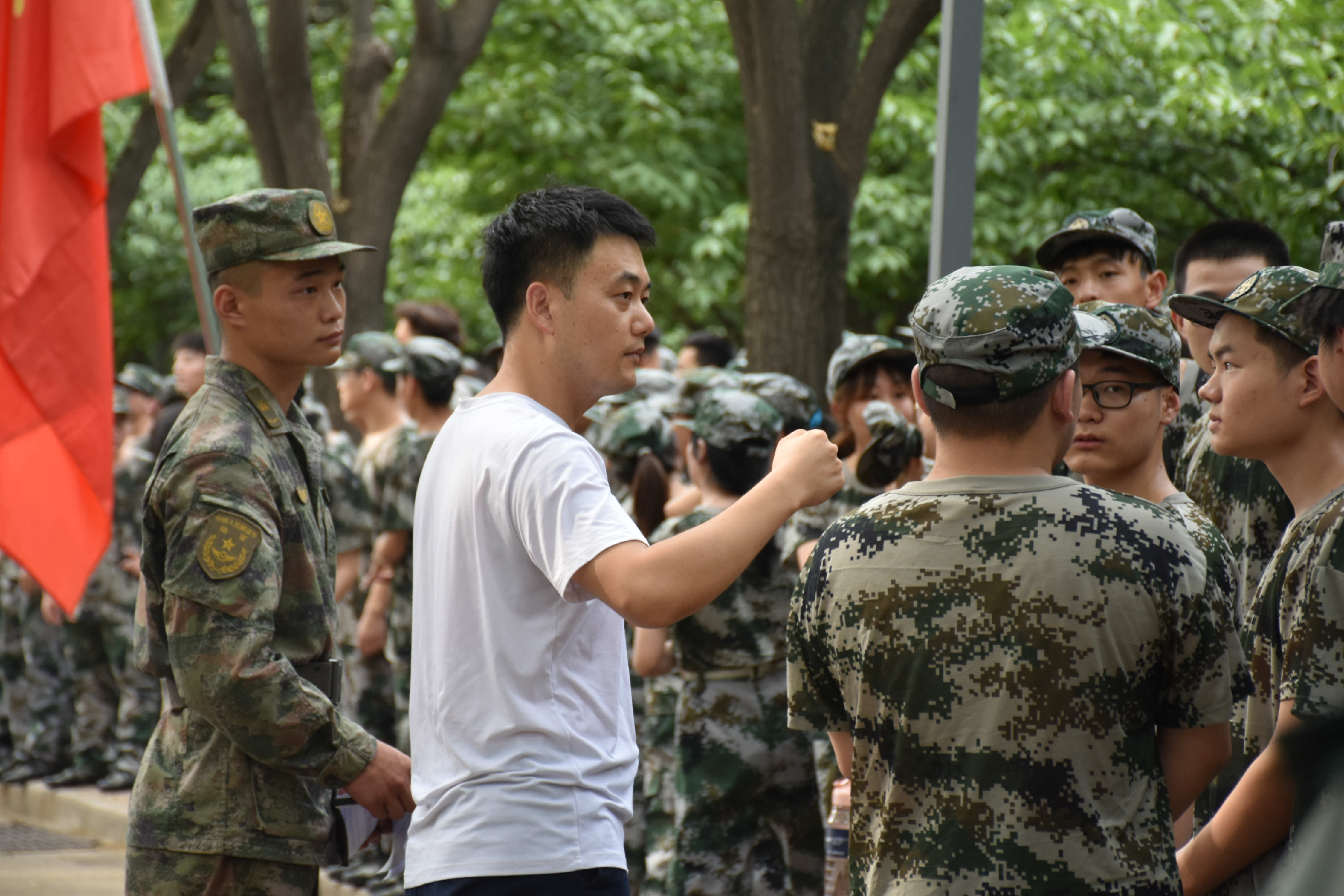 烈日下,同学们精神饱满,斗志昂扬,崭新的军训服装在阳光下煜煜生辉。16点30分,三名教官整齐向军训队伍走来,同学们大声向教官问好。随后,太阳成集团tyc122cc党委副书记郝卿在队伍前,向同学们提了几点要求:希望同学们在军训中端正态度、令行禁止,以饱满的热情投入到军训中来;努力发扬测绘人特别能吃苦、特别能战斗、特别能奉献、特别能学习的“四特”精神;同时关心同学们在军训期间合理安排作息时间,注意防暑防晒。随后,各连教官在列队前向同学们做了自我介绍,要求各连抖擞精神、克服困难,顺利完成本次军训任务。相信经过为期14天的军训生活,同学的规矩意识、纪律作风能够有较大的提升,为今后的学习、工作、生活打下鉴定基础。