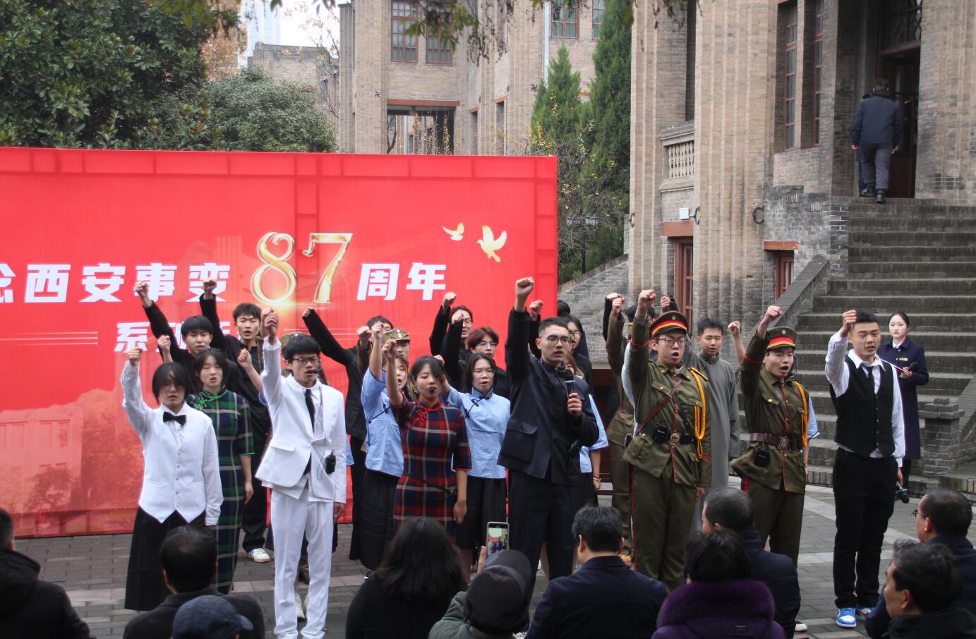 今年是西安事变87周年,为深入开展学习贯彻习近平新时代中国特色社会主义思想主题教育,进一步引导青年员工铭记光辉历史、传承红色基因,12月12日由太阳成集团tyc122cc志愿者赴张学良公馆旧址参加了纪念西安事变87周年系列活动,义演了话剧《双十二事变》,再现了八十七年前轰动全国的张学良、杨虎城将军劝谏蒋介石停止内战、一致抗日的历史事件,话剧演出现场不时传来观众的掌声和叫好声。