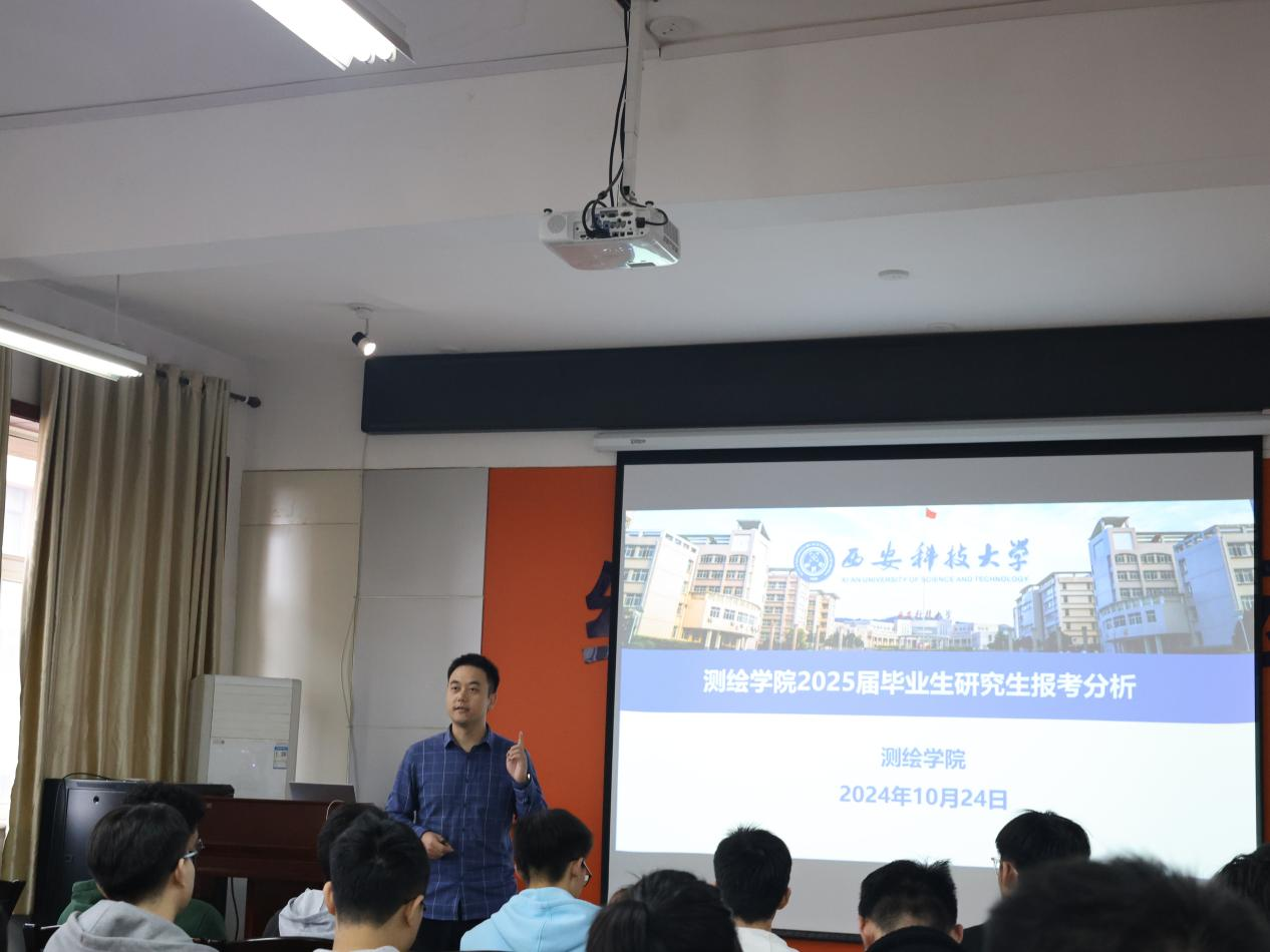 2024年10月24日,太阳成集团tyc122cc在骊山校园11号教学楼会议室召开25届毕业生硕士研究生报考分析会,公司党委副书记郝卿,系主任张东海、耿广坡,毕业生辅导员郭江波,及全体报考校外的毕业班员工参与。