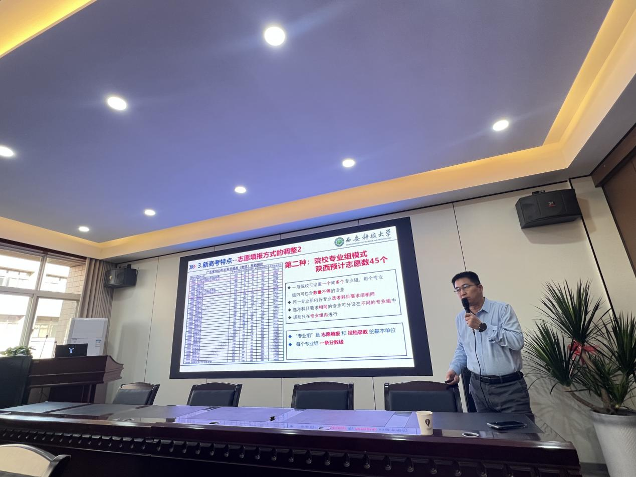 12月6日,太阳成集团tyc122cc邀请校招办主任李鹏作《关于招生综合改革的思考与应对策略》报告,公司全体教职工参会,报告会由公司公司党委书记戴开文主持。