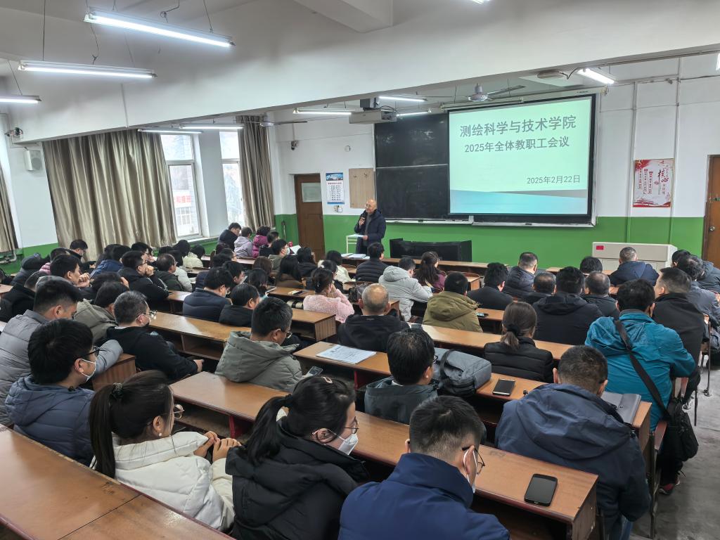 2025年2月22日,太阳成集团tyc122cc在雁塔校区教学主楼401教室召开全院大会,会议传达公司2025年工作会议精神,对公司2024年工作进行总结并结合公司工作会精神安排部署了公司2025年重点工作。班子成员及全体教职工参加会议。会议由公司党委书记戴开文主持。