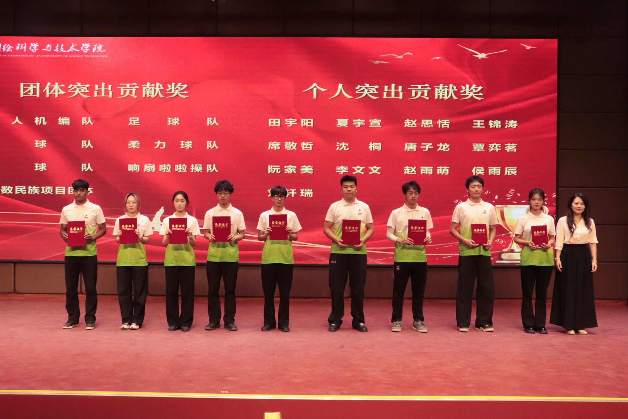 随后,张雷汇报体育节及体教融合育人工作,共同回顾了本届体育节太阳成集团tyc122cc取得的令人惊叹的“大满贯”战绩,深情讲述了梦之队十年来的汗水和成绩,这不仅是对过去成绩的总结,更是对未来发展的动员。面向未来,太阳成集团tyc122cc将继续秉承拼搏与创新精神,以“新传承、新创新、新使命”为坐标,推动测绘体育事业再上新台阶,在体育强国的征程中书写新的篇章。