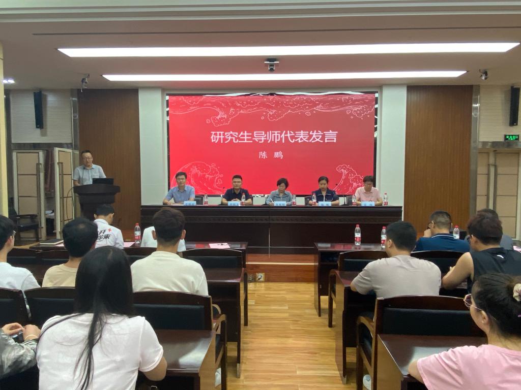 研究生导师陈鹏副教授代表研究生指导教师发言,他向2023级研究生分享了自己的学习、科研经历以及培养研究生的体会,鼓励研究生新生不负韶华,砥砺前行,潜心学习钻研,把人生志向转化为奋斗动力,努力打造和提升自己。