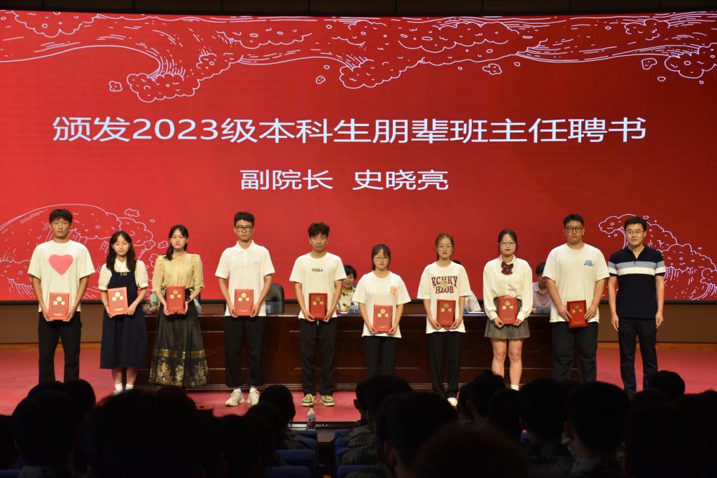 尔后,由公司党委书记殷屈娟宣读2023级本科生朋辈班主任聘任文件,并由副经理史晓亮颁发聘书。副经理竟霞为军训承训优秀教官颁发荣誉证书。